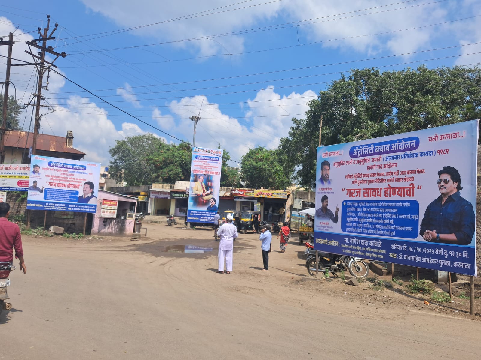 करमाळा (सोलापूर) : करमाळा शहरात आज (शनिवार) रिपब्लिकन पार्टी ऑफ इंडियाचे (आठवले गट) पश्चिम महाराष्ट्र संघटक नागेश कांबळे यांच्या नेतृत्वाखाली ‘ऍट्रॉसिटी बचाव आंदोलन’ होणार आहे. अनुसूचित जाती, जमाती अत्याचार प्रतिबंधक कायद्यानुसार दाखल गुन्हात कडक कारवाई व्हावी या मागणीसाठी हालगी नाद आंदोलन केले जाणार आहे. यावेळी दीपक केदार व वैभव गीते हे मार्गदर्शन करणार आहेत. या आंदोलनाच्या पार्श्वभूमीवर गायकवाड चौक परिसरात लावलेले बॅनर सर्वांचे लक्ष वेधत आहेत. या आंदोलनात सहभागी होण्याचे आवाहन करण्यात आले आहे.