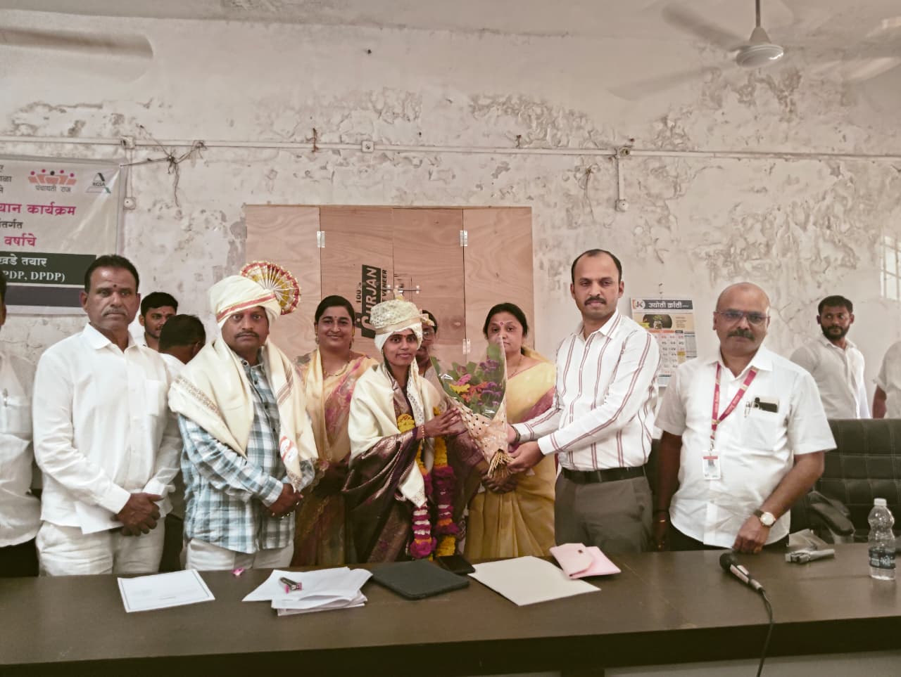 करमाळा (अशोक मुरूमकर) : करमाळा पंचायत समितीच्या सभापतीपदी भाजपच्या पूजा ढेरे यांची तर उपसभापतीपदी माजी आमदार संजयमामा शिंदे यांचे समर्थक राष्ट्रवादीचे (अजित दादा) ऍड. अजित विघ्ने यांची बिनविरोध निवड झाली आहे. आमदार नारायण पाटील यांचे समर्थक माजी सभापती अतुल पाटील यांच्या पत्नी अदिती पाटील यांनीही सभापती पदासाठी उमेदवारी अर्ज दाखल केला होता. मात्र त्यांनी अर्ज मागे घेतल्याने ढेरे यांची बिनविरोध निवड झाली. ढेरे यांच्या निवडीमुळे करमाळ्यात पहिल्यांदाच भाजपचा सभापती झाला आहे.