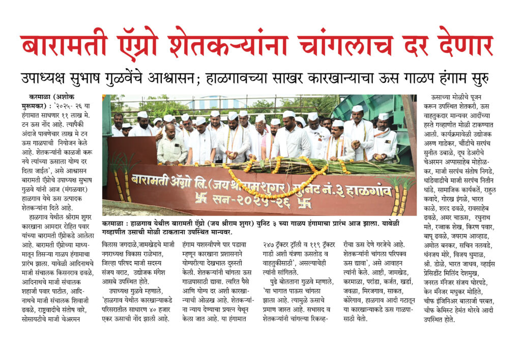 बारामती ऍग्रो शेतकऱ्यांच्या ऊसाला चांगलाच दर देणार : सुभाष गुळवेंचे आश्वासन; हाळगावच्या साखर कारखान्याचा ऊस गाळप हंगाम सुरु